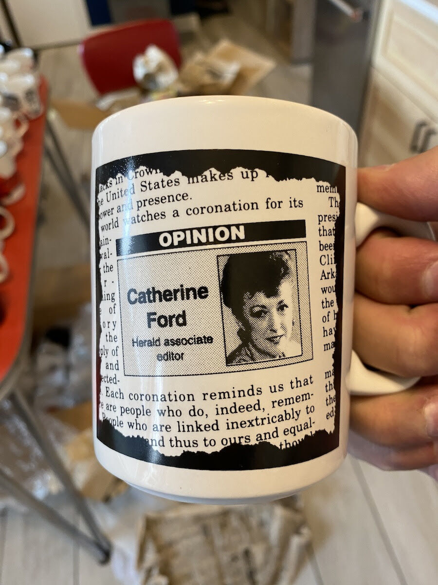 "My niece’s husband says you might want my 60-year collection of media mugs," wrote Ford, who has been writing for the newspaper since the 1960s. "All you have to do is pick it up."