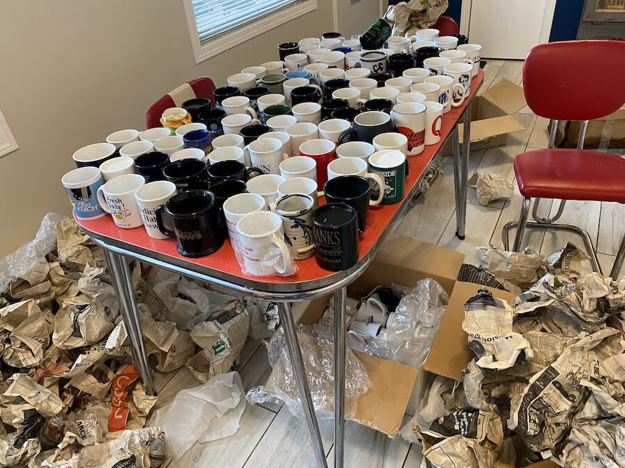 Surveying the scene in my kitchen before my wife got home, I knew I had to develop an explanation for this avalanche of mugs, and quickly. So I devised a plan where I would give most of these away. I would find people who want them. And I would do it within 48 hours.