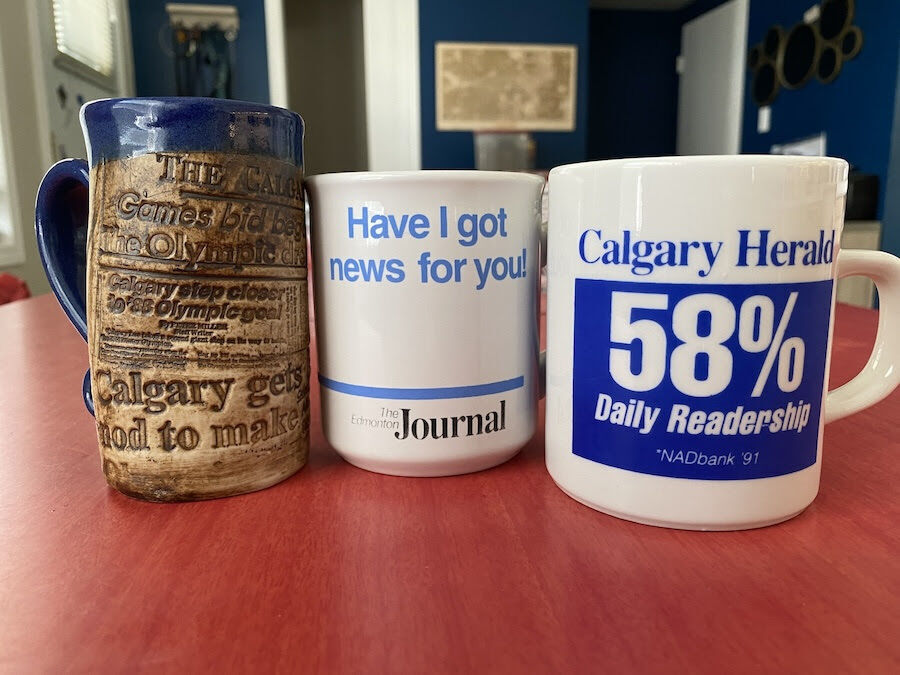 Other mugs went to reporters and former reporters of the Globe and Mail, the Toronto Star, Medicine Hat News and so on.