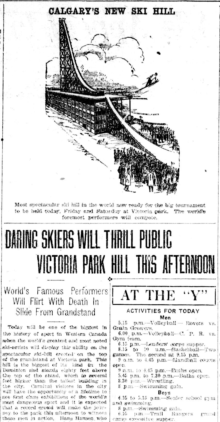But the ski jump, built with steel shipped from Winnipeg, was the carnival's marquee attraction. Local newspapers couldn’t hype it enough. The Albertan called it the “most spectacular ski hill in the world.”