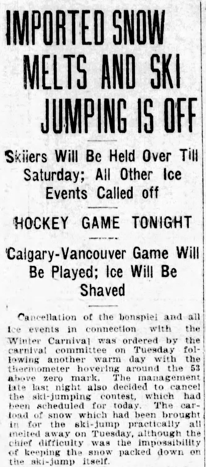 That was the end of the short-lived Calgary Winter Carnival—and the Stampede ski jump.