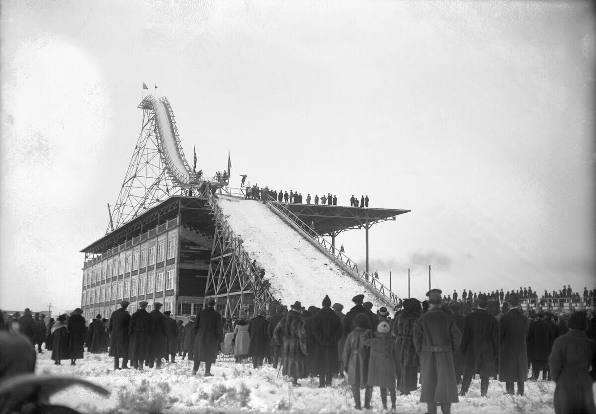 In 1924, some 2,000 people showed up for the Saturday ski jumping—far less than in previous years. Skiers didn't fly far, either. The furthest went 77 feet, much less than the 110-plus feet that skiers were flying in 1921, when the jump was more of a death trap. “Distance not so good,” said the Herald.