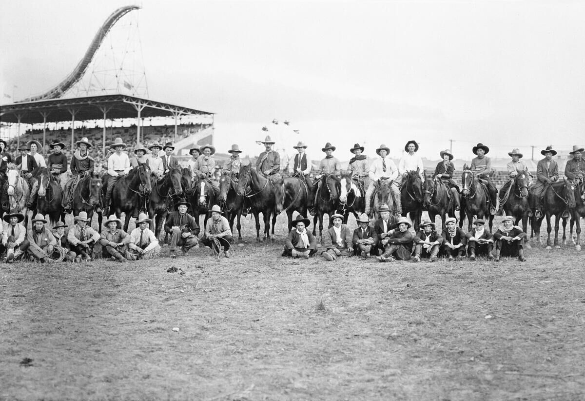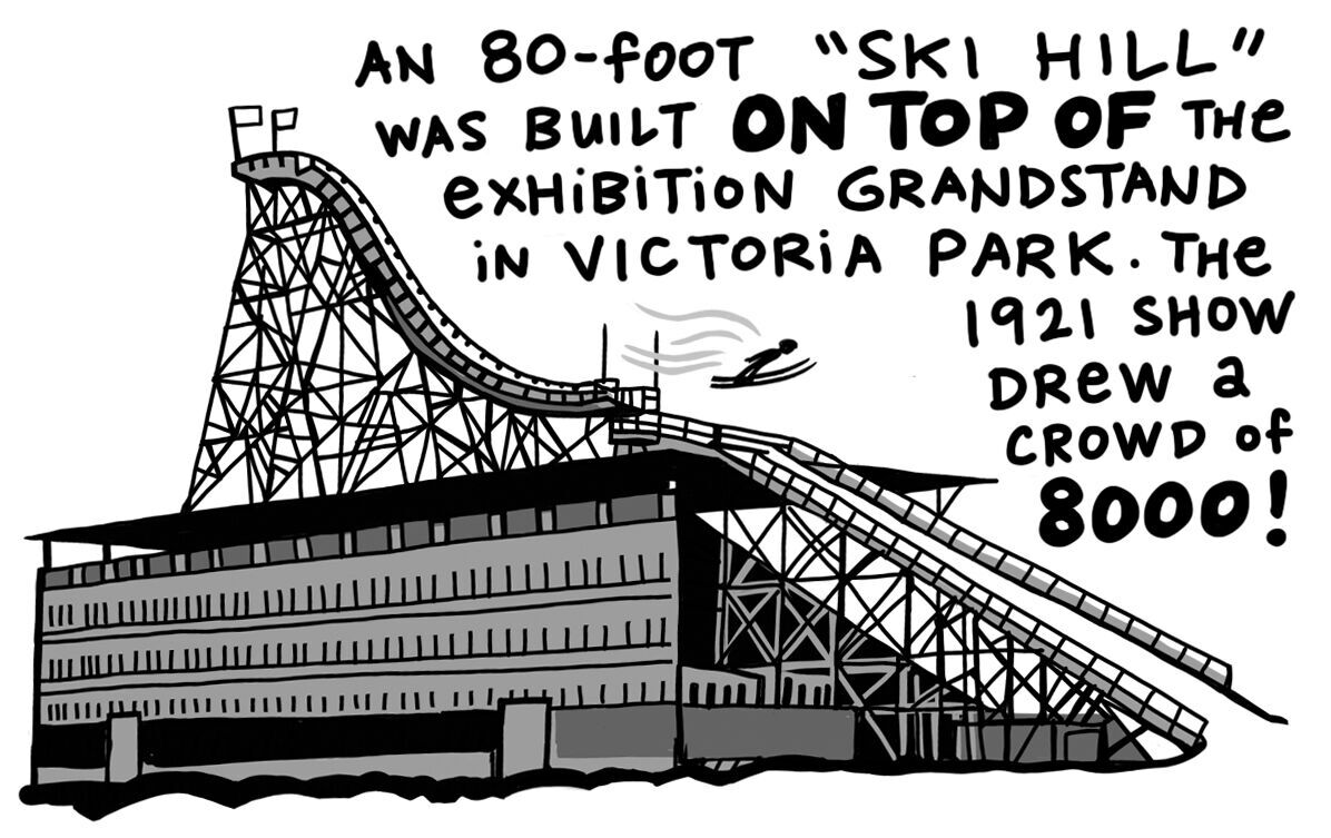In the early 1920s, the Calgary Winter Carnival, which took place on the Stampede grounds we know today, was a big deal. The city's population was just over 63,000. The Exhibition flooded the race-track oval for speed skating. There was also curling, hockey, ski racing, figure skating, snowshoe races and skijoring (skiing behind ponies).