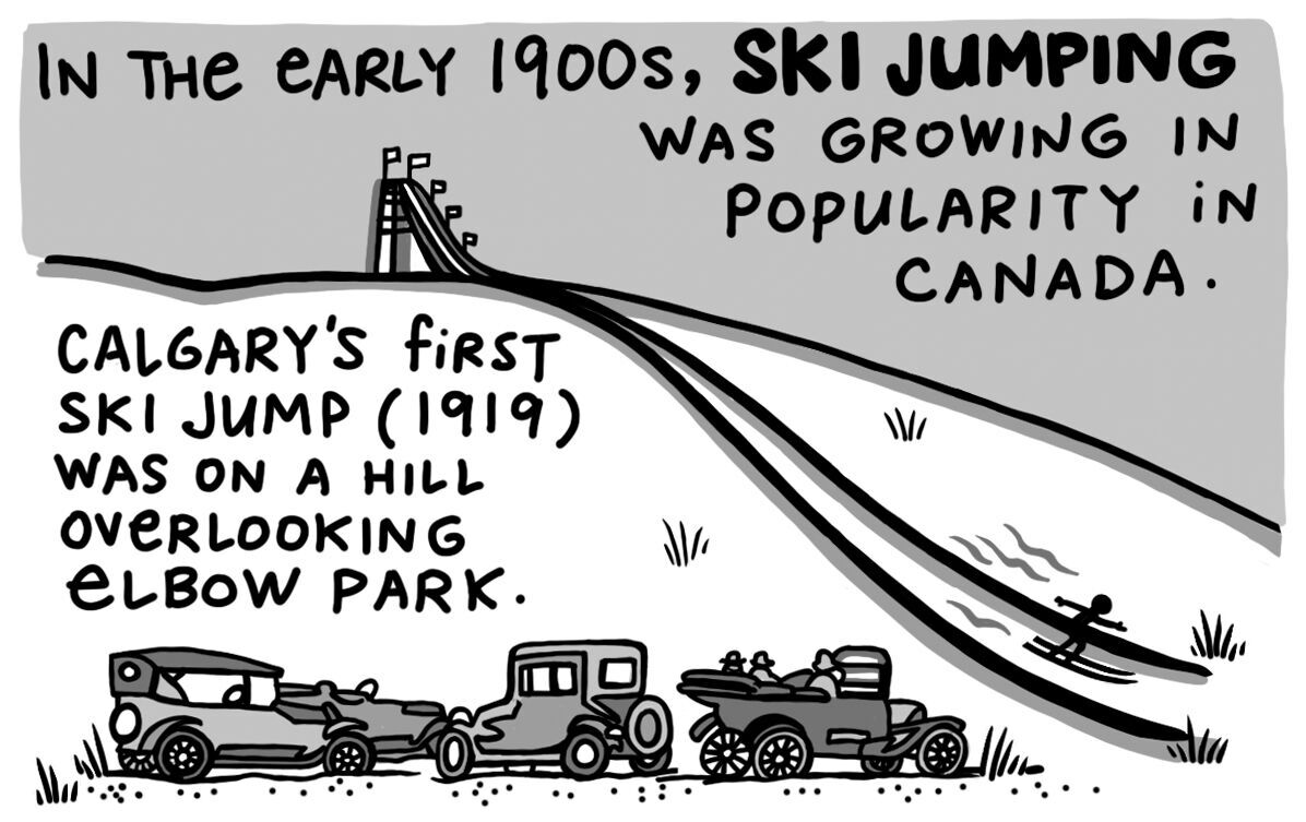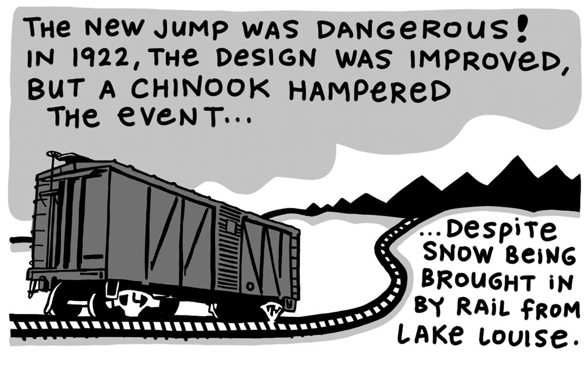 Although the Calgary jump distances in 1921 “were not near the marks established at the big slides in the mountains, the people got a real taste of the sport,” reported the Herald.
