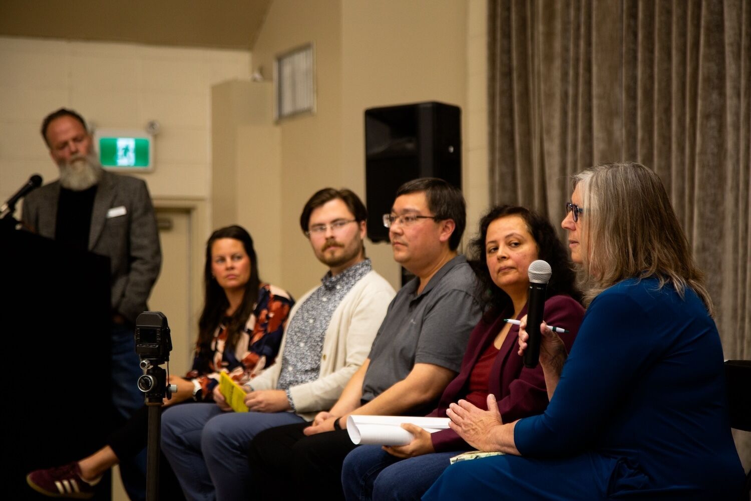 Featuring councillor candidates Kourtney Penner (Independent), Alex Williams (The Calgary Party), plus CBE school trustee candidates Tyzen Ario, Pooja Sharma and Nancy Close at the Acadia Recreation Complex. Councillor candidate Rob Ward (Communities First) was invited but did not attend.