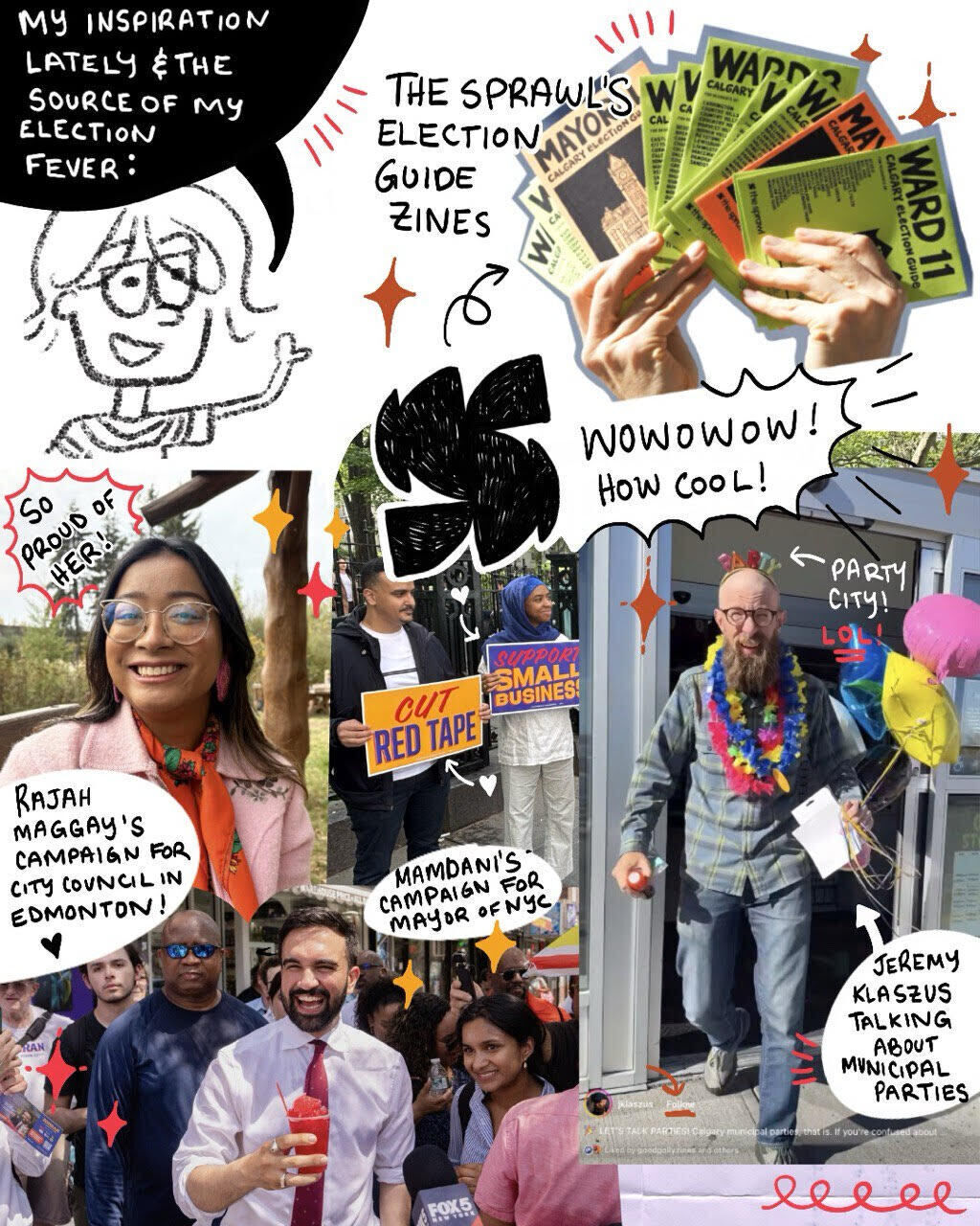 In Ottawa, Laura Blanchette of Good Golly Zines publishes Mid City, a zine that covers local municipal issues. Laura recently wrote about (and illustrated!) what is inspiring her as she gears up to cover that city’s 2026 election using the zine format.