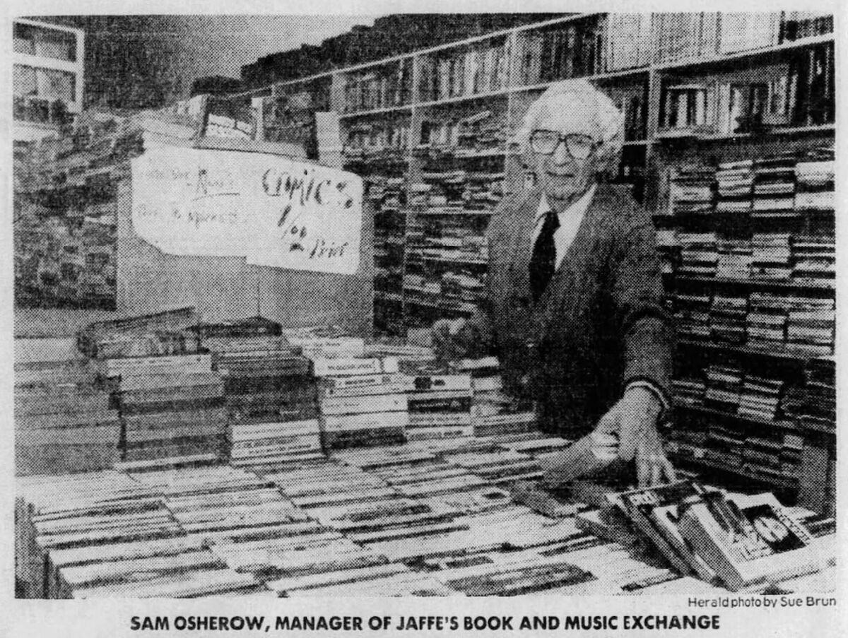 Which is how I discovered Jaffe’s downtown, an amazing old-fashioned bookshop. It had a rather narrow entrance with a very high counter. A couple of older Jewish gentlemen were running it, one of whom had a very high voice.