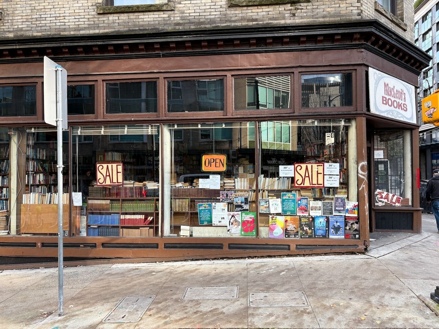I took over an existing bookshop. MacLeod’s Books had been founded in 1964 and the owner had sold it in 1970 and gone to the Sunshine Coast to become a land pirate, i.e. real estate. And then he sold it to an American, Van Andruss, who had tired of it. He had enjoyed it but he wanted to do something different. So when he sold it to me, he went off to Lillooet, founded with others an intentional community, and he’s still there. He’s an environmental writer. He’s had the kind of life he wanted to lead doing that.